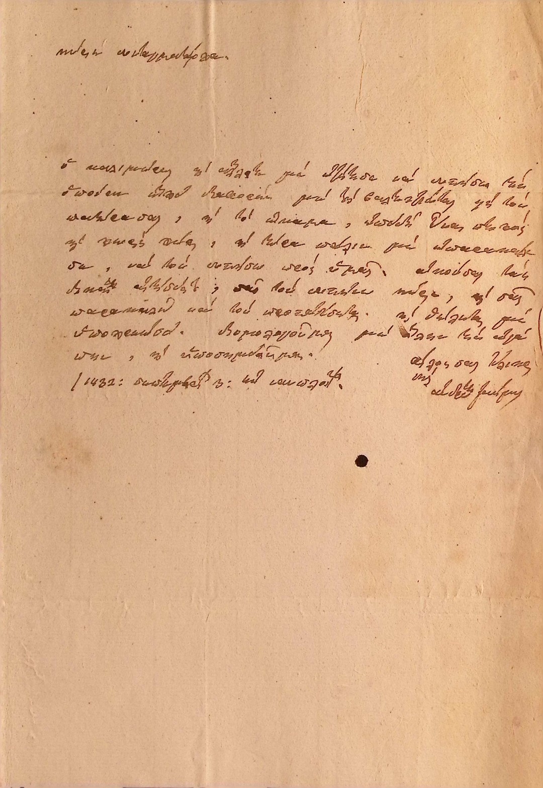 | Τίτλος | Επιστολη Θεοδωρου Κολοκοτρωνη προς Γενναιο Κολοκοτρωνη - αναφορικα με αφιξη νεων στρατευματων του Ιμπραιμ και επικειμενης επιθεσης στη Σπαρτη |