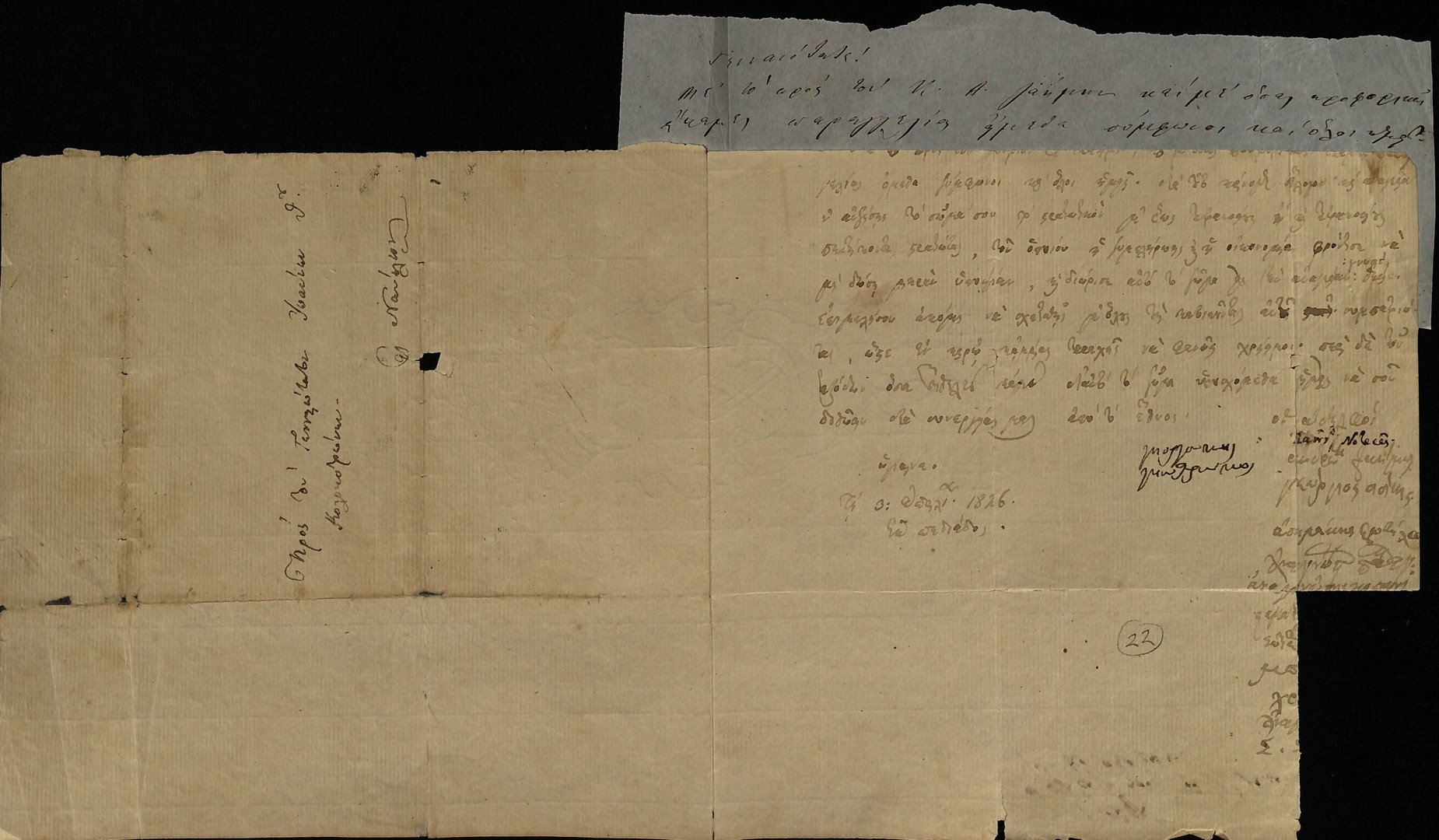 | Τίτλος | Επιστολή Γενικού Αρχηγού Θεόδωρου Κολοκοτρώνη προς Ιωάννη Θ. Κολοκοτρώνη (Γενναίο) με διαταγή να μεταβεί και να επιχειρήσει με 400 άνδρες στην Δυτική Ελλάδα |