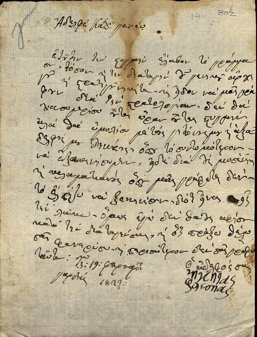 | Τίτλος | Επιστολη Νικητα Φλεσσα προς Γενναιο Κολοκοτρωνη |