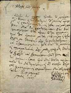| Τίτλος | Επιστολή Δημήτρη Παπατσώνη και Νικήτα Φλέσσα προς Ιωάννη Θ.Κολοκοτρώνη (Γενναίο) για την άλωση της Καλαμάτας [ ..προφθάσετε με όσα στρατεύματα αυτού διότι εχάθη ο κόσμος, απόψε φθάσετε, δι΄αγάπη Θεού] |