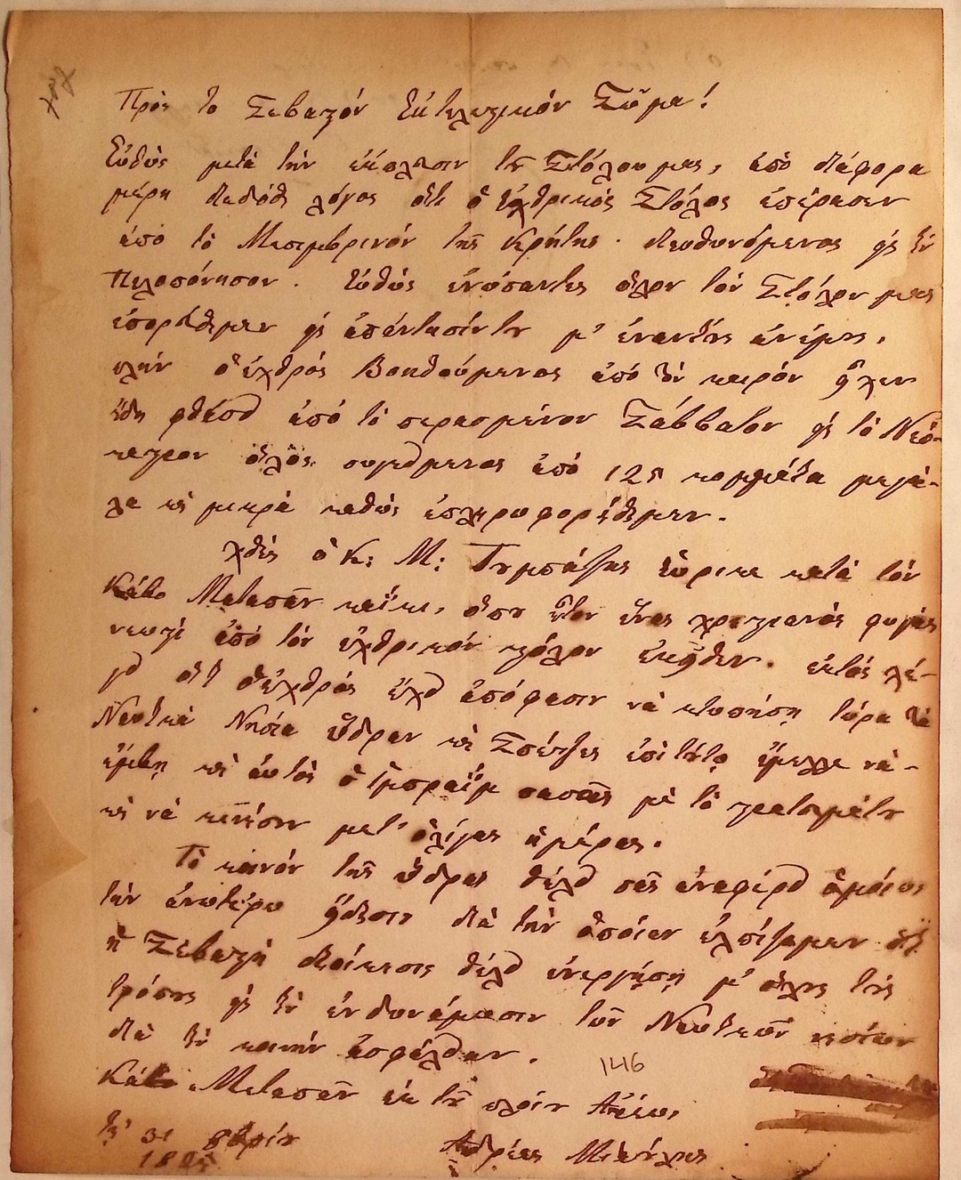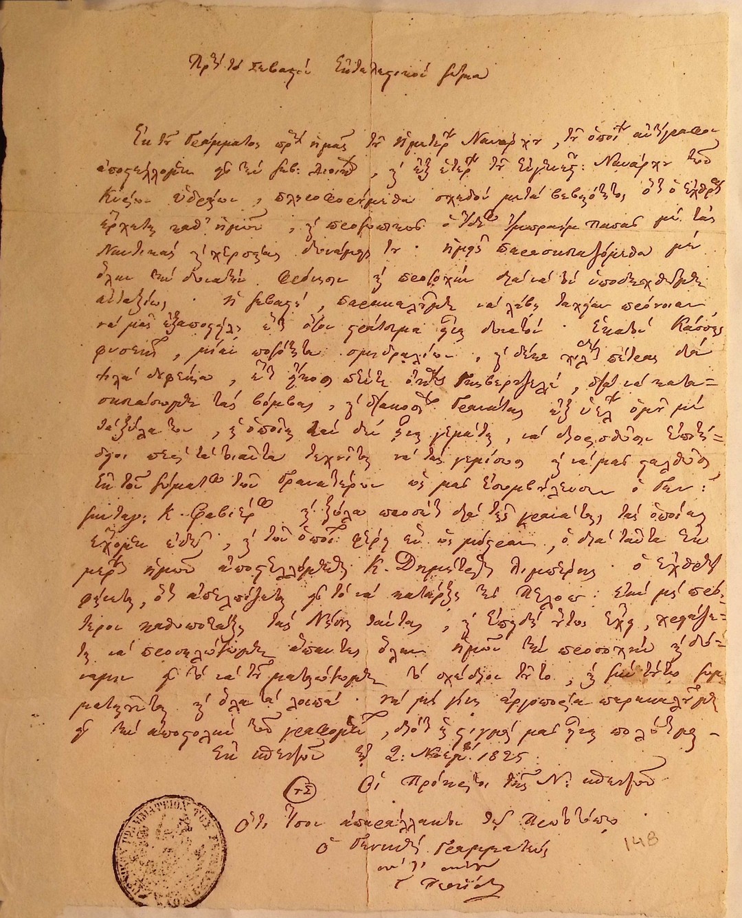 | Τίτλος | Επιστολη Μιαουλη προς εκτελεστικο αναφορικα με αφιξη στολου στο Νεοκαστρο και ενημερωση περι σχεδιου επιθεσης των νησων Υδρας και Σπετσων απο τον Ιμπραημ |