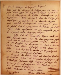 | Τίτλος | Επιστολη προκριτων Σπετσων προς Εκτελεστικο αναφορικα με αιτηση αποστολης πολεμοφοδιων προς οχυρωση και αντιμετωπιση επικειμενης επιθεσης απο τον αιγυπτιακο στολο |