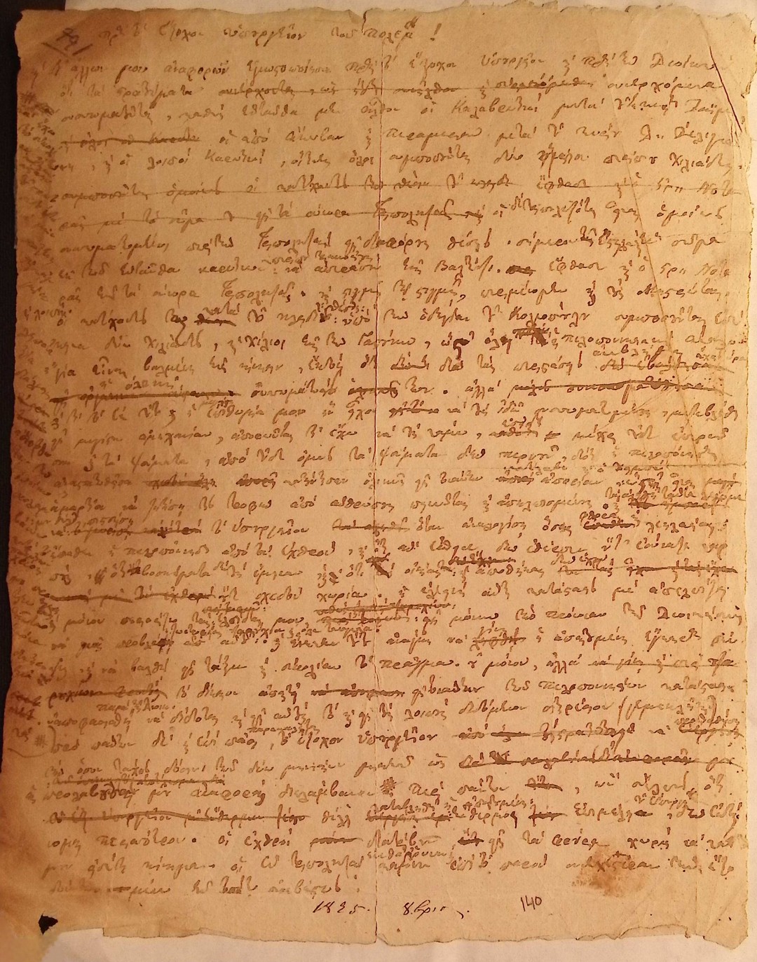 | Τίτλος | Επιστολη Θ.Κολοκοτρωνη προς Υπουργειο Πολεμου αναφορικα με την ελλειψη πολεμοφοδιων για τα στρατευματα τα οποια ανευ αυτα δεν μπορουν να κινηθουν κατα του εχθρου |
